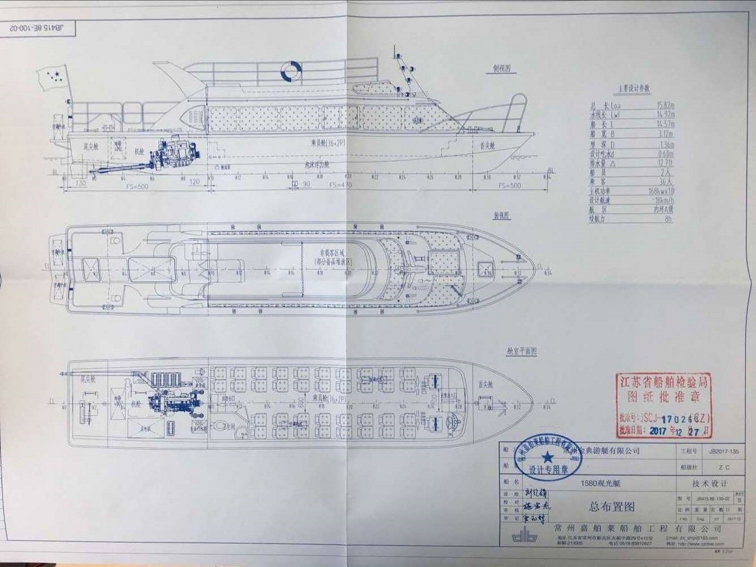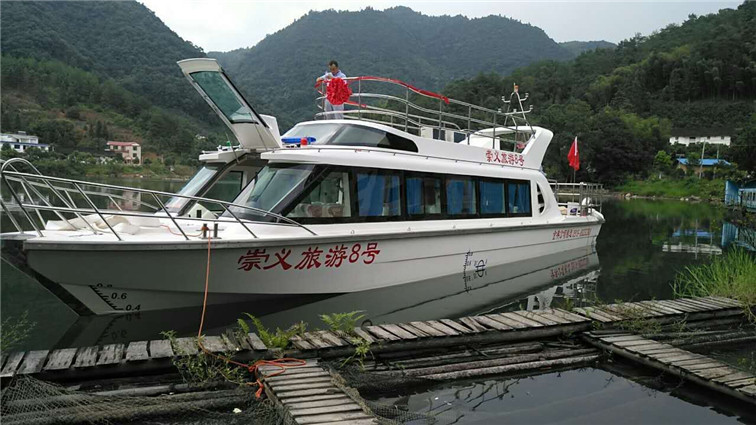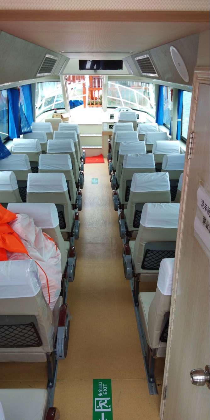 公司自行設(shè)計(jì)開發(fā)的多功能高速客船,單層主甲板,二層觀光甲板,全艇玻璃鋼建造,單體,高速排水型艇型,柴油機(jī)驅(qū)動,適用于內(nèi)河、湖泊的交通運(yùn)輸,旅游觀光接待,行政巡邏執(zhí)法等任務(wù)。